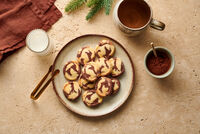 Butter dazugeben und mit einer Teigknetmaschine oder einem Handrührgerät zu einem glatten Teig verarbeiten. Die Hälfte des Teigs herausnehmen. Backkakao in die Rührschüssel geben und nochmals gut vermengen.